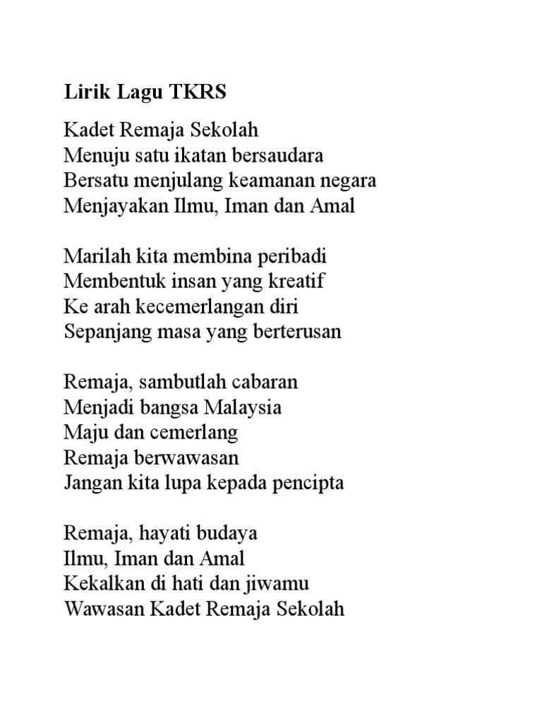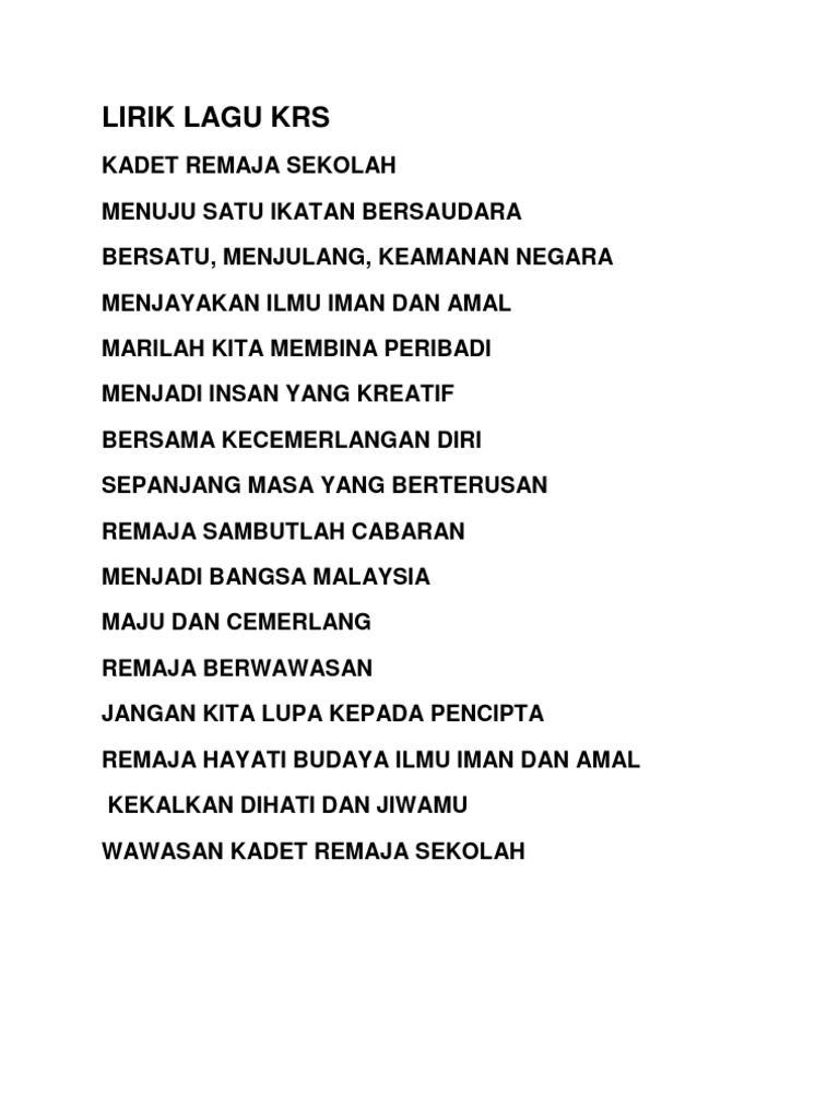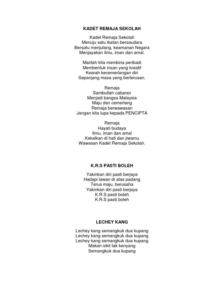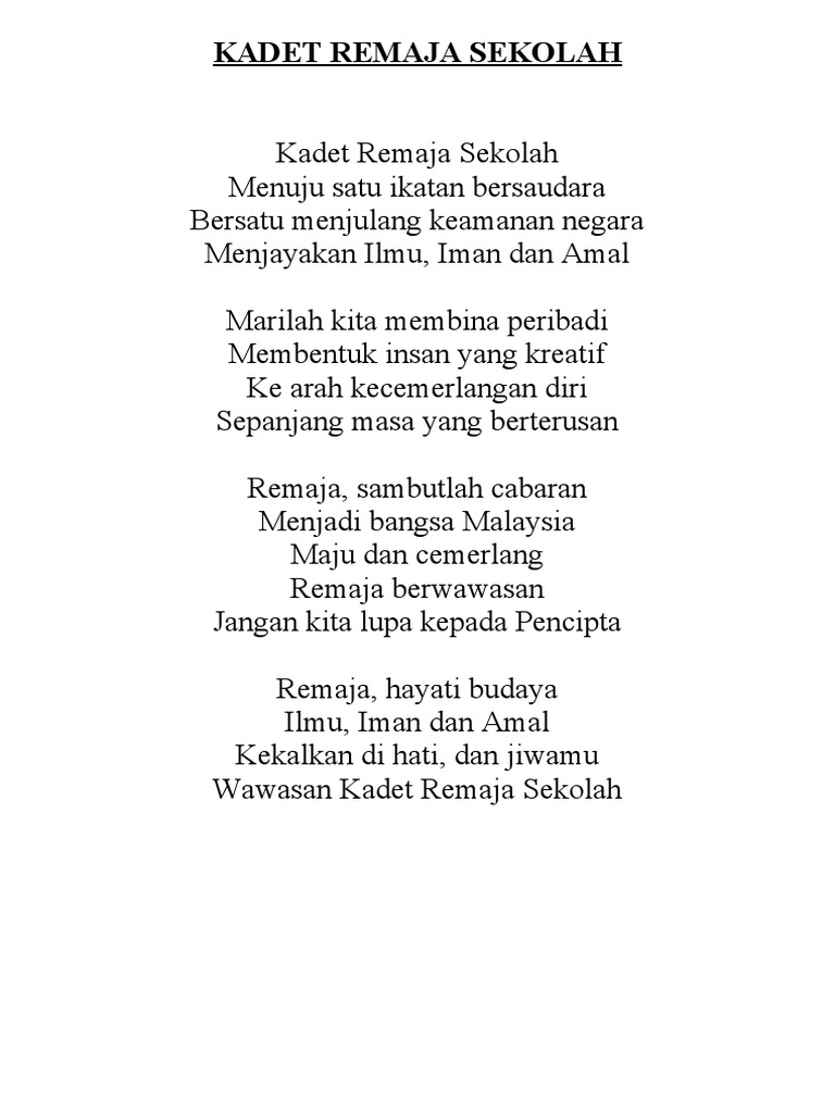 Lirik Lagu Kadet Remaja Sekolah Pdf