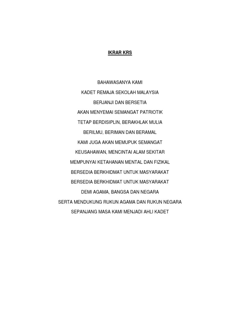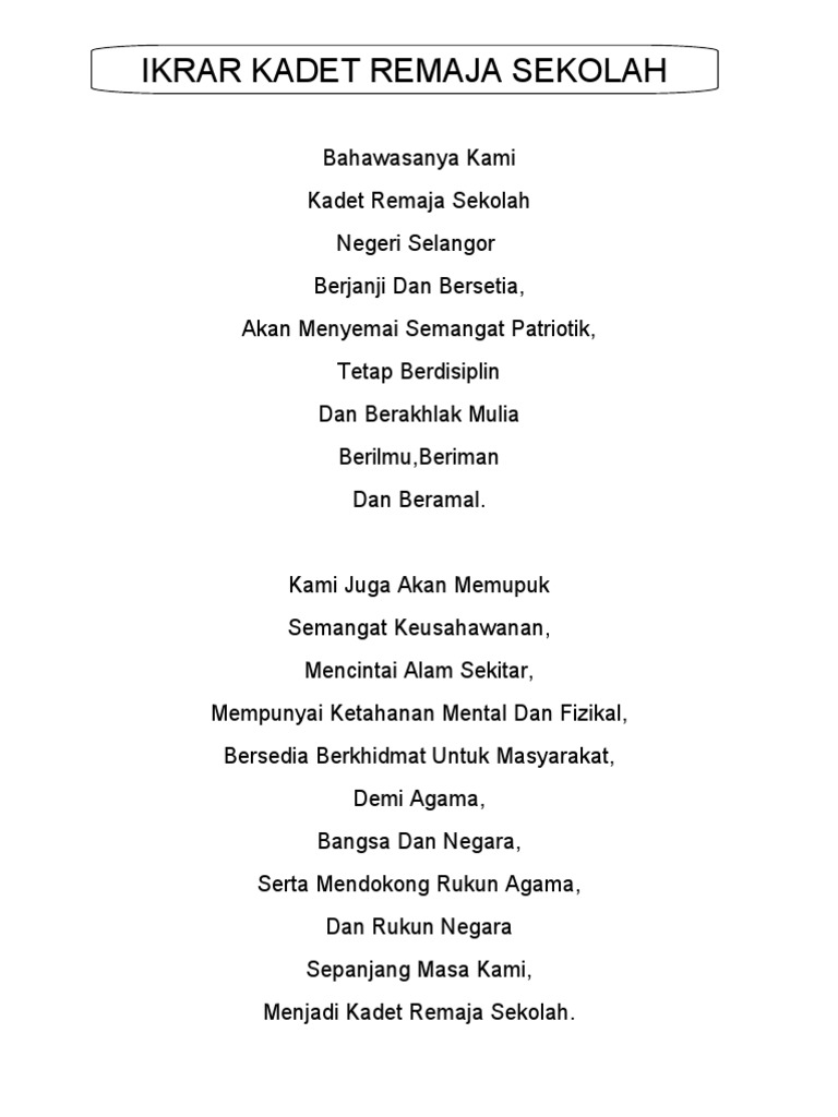 Ikrar Tunas Kadet Remaja Sekolah Pdf